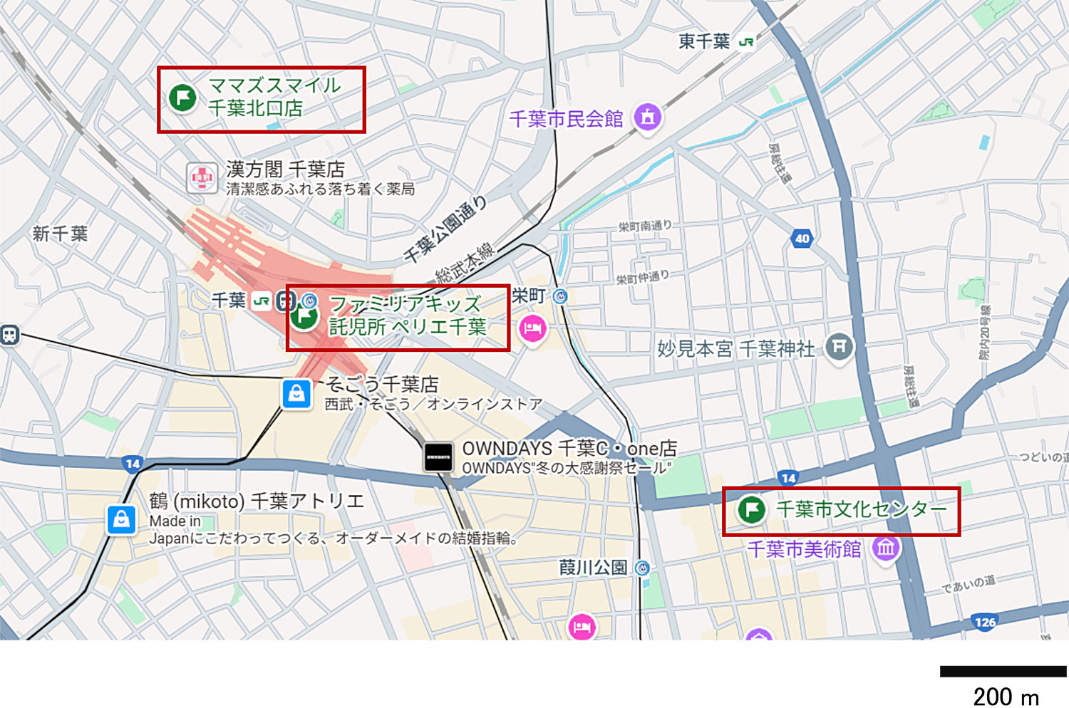 | 事業者名 | ファミリアキッズ ペリエ千葉 | ママズスマイル 千葉北口店 |